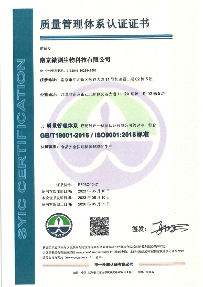 质量管理体系证书